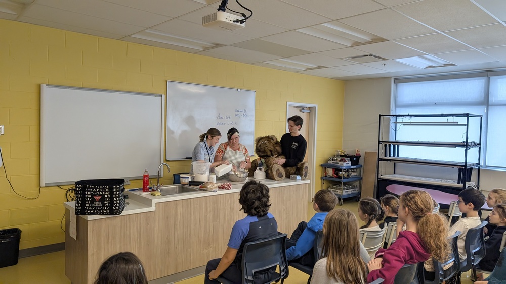 Avec beaucoup d’humour et de bonne humeur, Matilda a partagé avec les élèves un moment rempli de culture et de traditions acadiennes en leur préparant un dessert bien connu : les pets de sœurs!